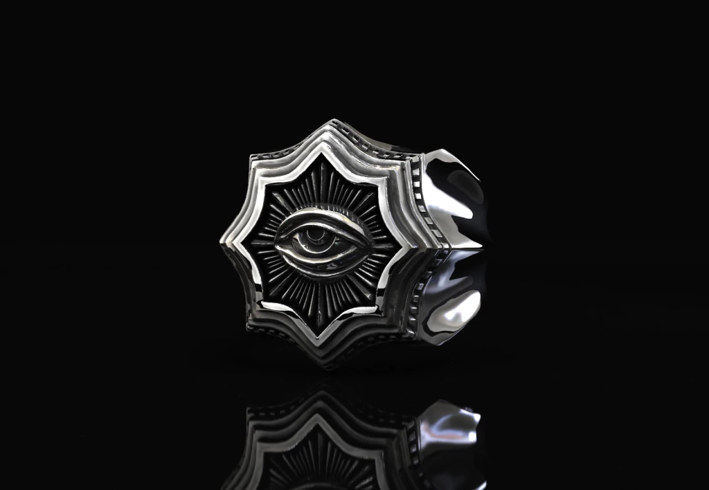 Uma peça que é um convite para a contemplação e introspecção. Um anel onde o simbolismo permeia cada faceta e detalhe. O 'Olho que tudo vê' é, por tradição, tido como um símbolo de proteção, que afasta as forças do mal e ilumina, com vigilância incansável, a jornada daquela pessoa que o veste. Está presente para nos lembrar que, mesmo nas horas mais difíceis, jamais estamos verdadeiramente sozinhos, pois o Universo está sempre vigilante.