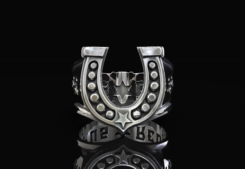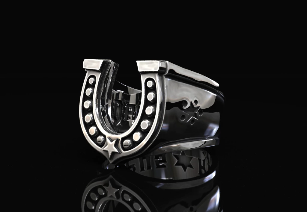 Simplicidade e elegância. O anel 'The Gent' é inspirado num filme, que gostamos muito, lançado durante a fase gindhouse do Tarantino nos anos 2000. O personagem que dá nome ao anel é interpretado por nada menos que Michael Madsen (Sim. Aquele da dancinha em Reservoir Dogs). O simbolismo da ferradura não pode ser mais clássico, pois remete a tudo relacionado à vida na natureza, força, aventura, rebeldia e liberdade.