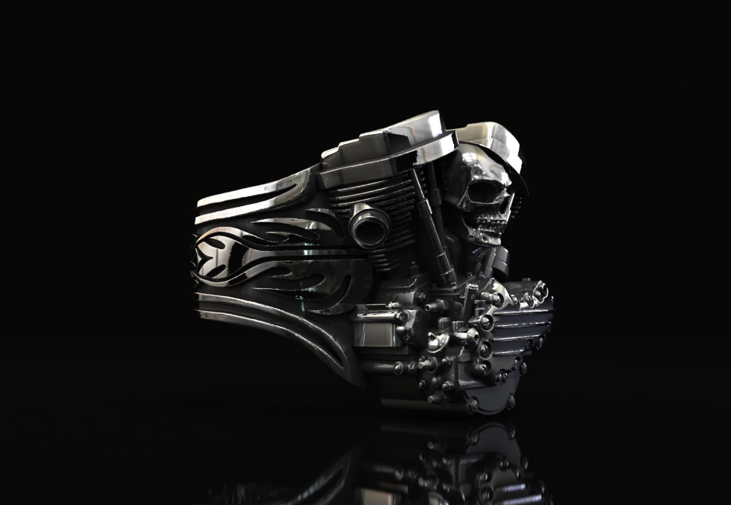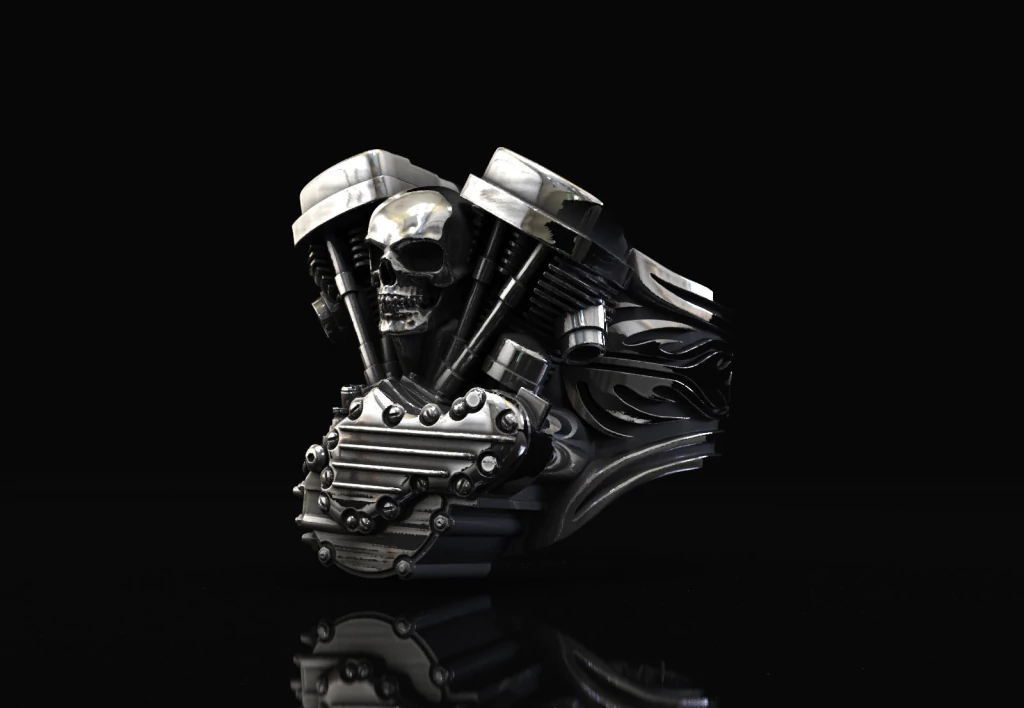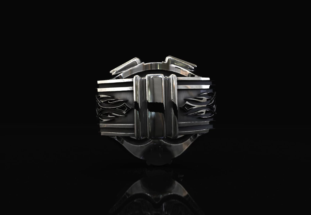 Uma das peças mais ousadas, roubustas e pesadas de todo nosso catálogo. Um anel cujo design praticamente dispensa qualquer descrição. Uma peça cuja inspiração é pura estrada, potência e velocidade. Onde quer que você estiver, na Route 66 ou viajando de LA para NOLA, esta é a nossa homenagem a todos espíritos aventureiros e independentes.